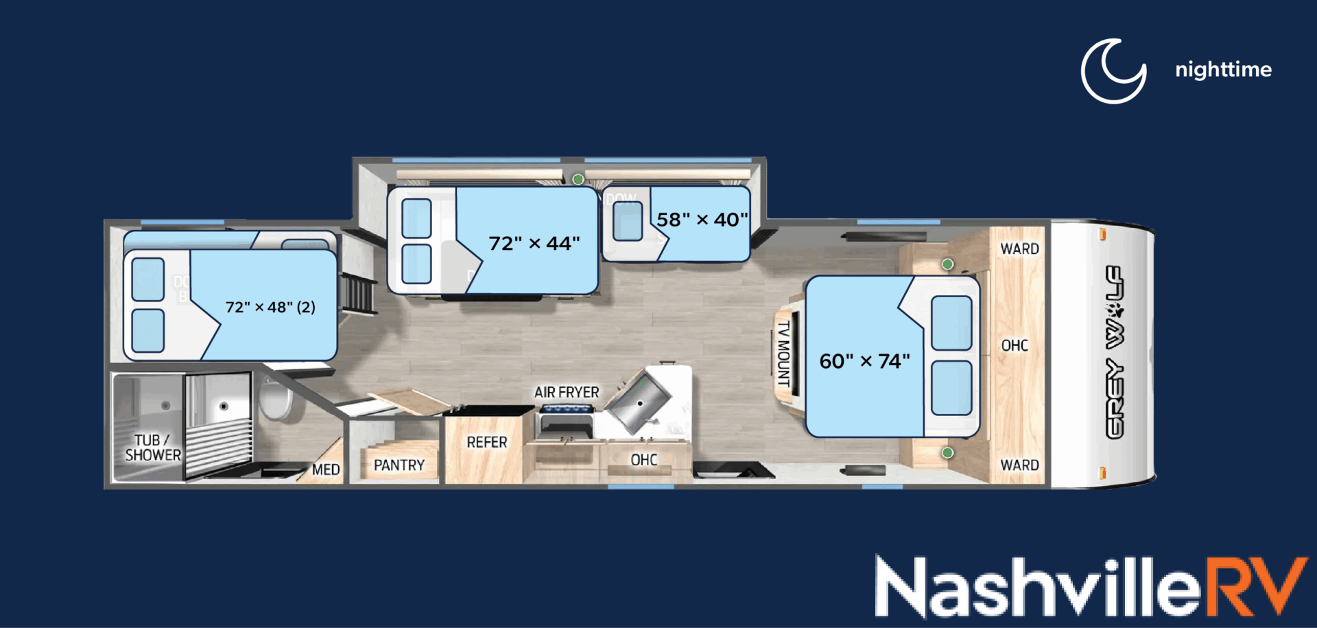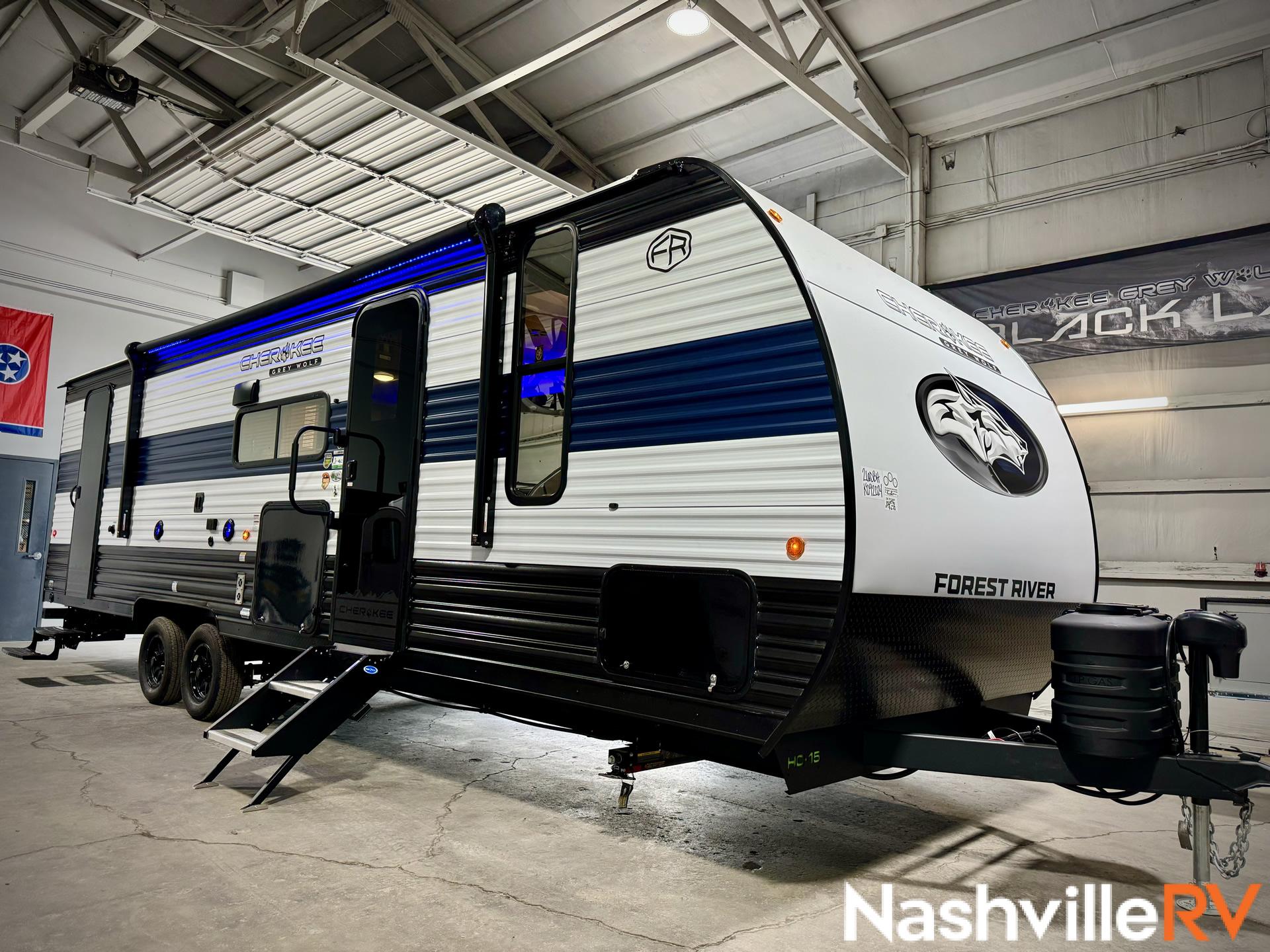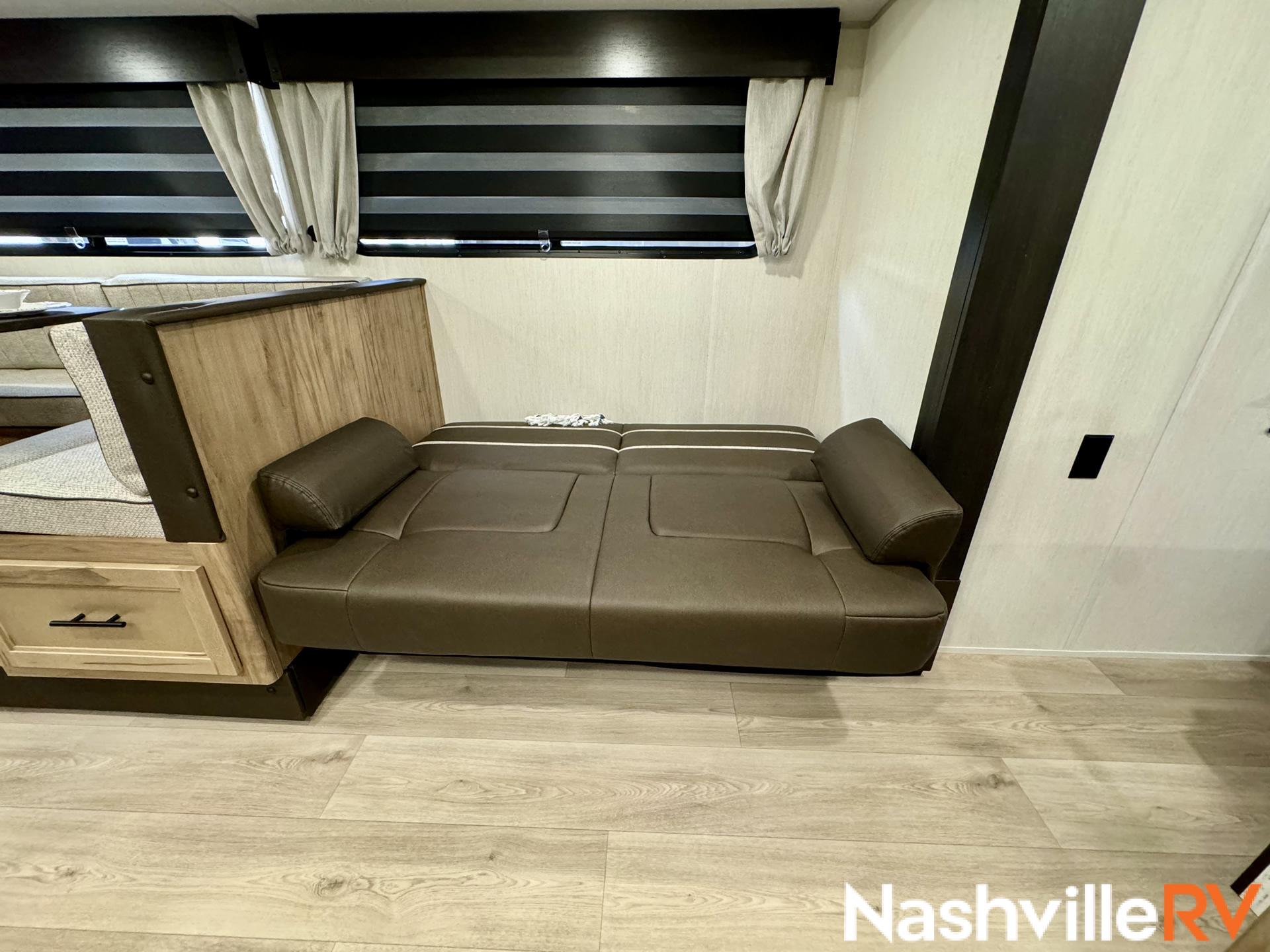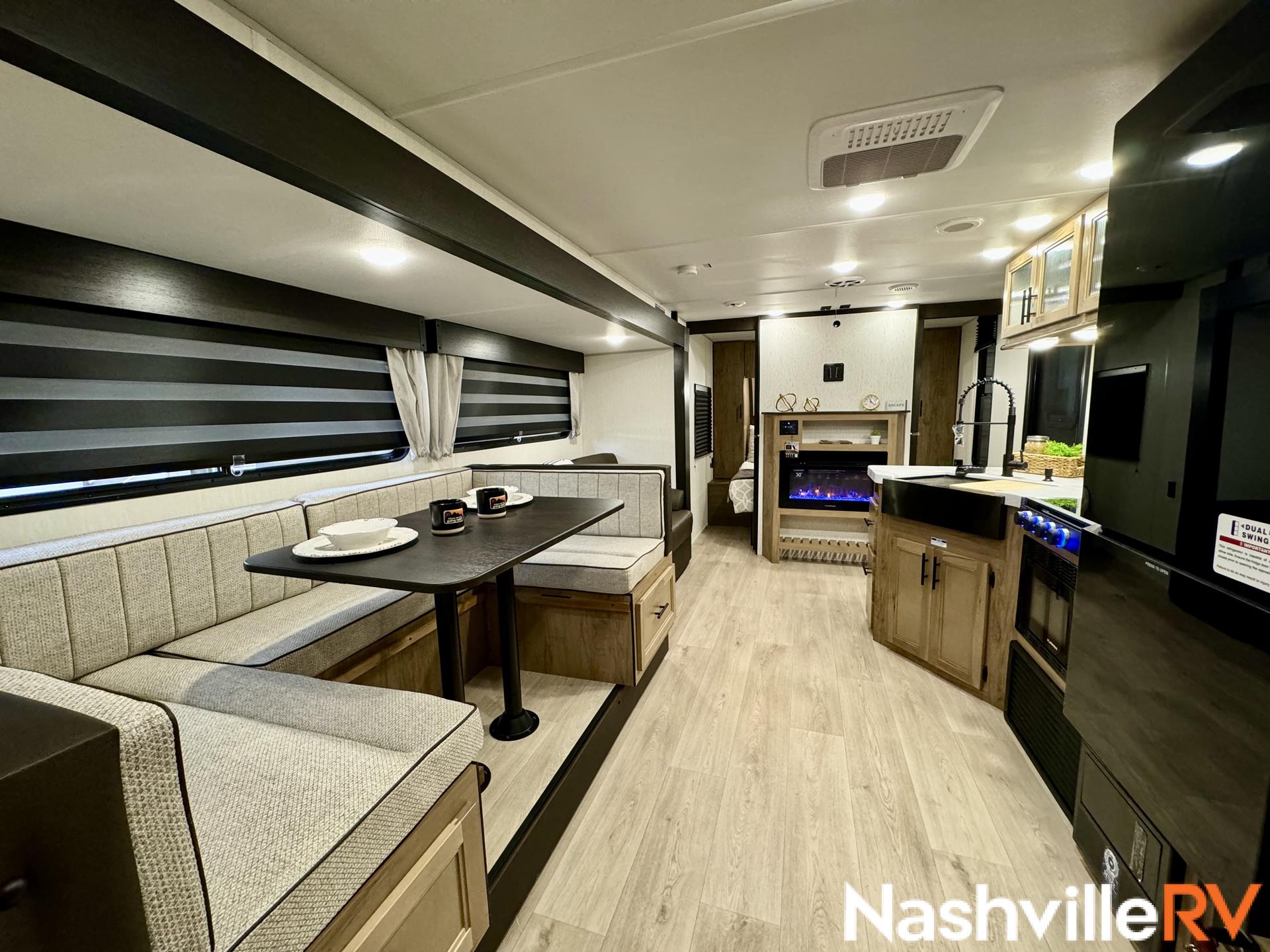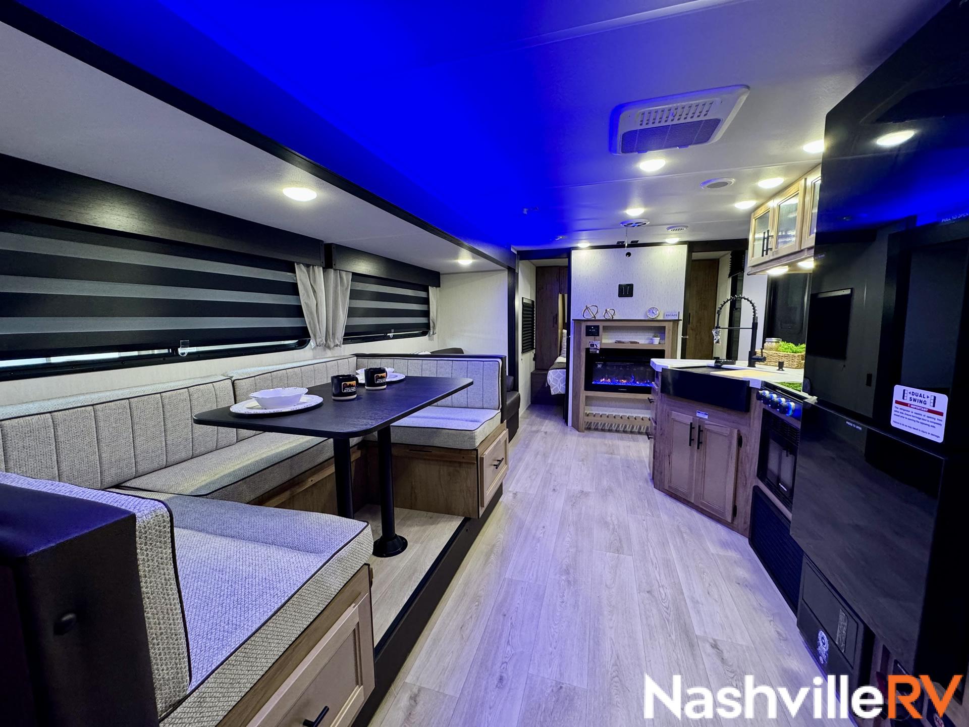 Our most popular travel trailer rental. Tow this travel trailer rental to your favorite spot and get ready for a great time. The whole family can sleep comfortably with a master queen in the front bedroom and 2 double beds in the rear. Our customers also love the exterior entry to the bathroom, huge pantry and the Electric Shade Awning with LED lights. Cook outside on the convenient outdoor kitchen with fridge. These trailers book up quickly so reserve your dates early!