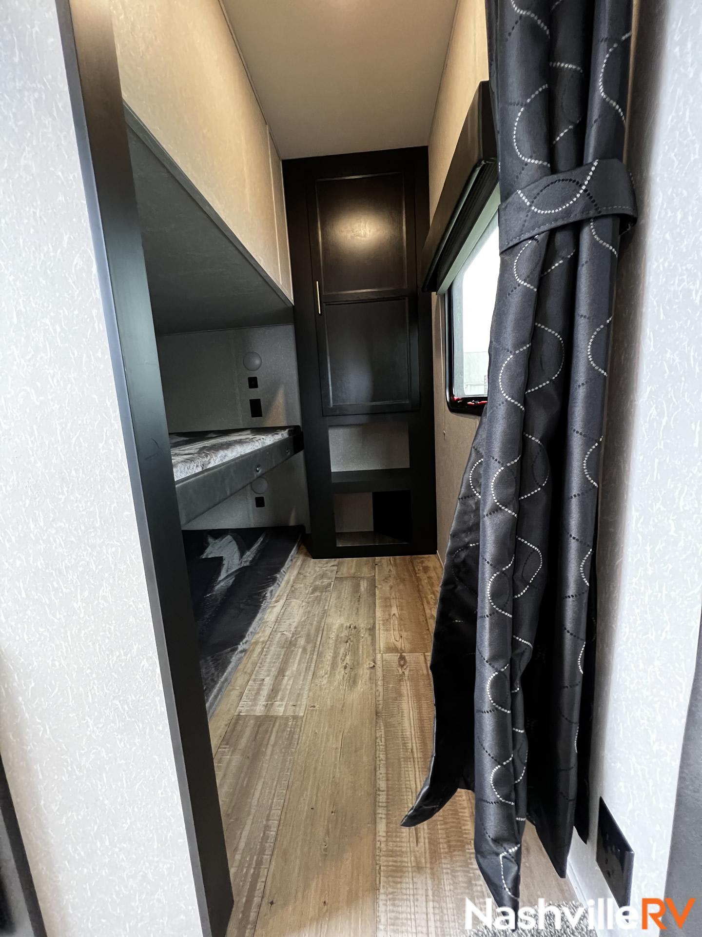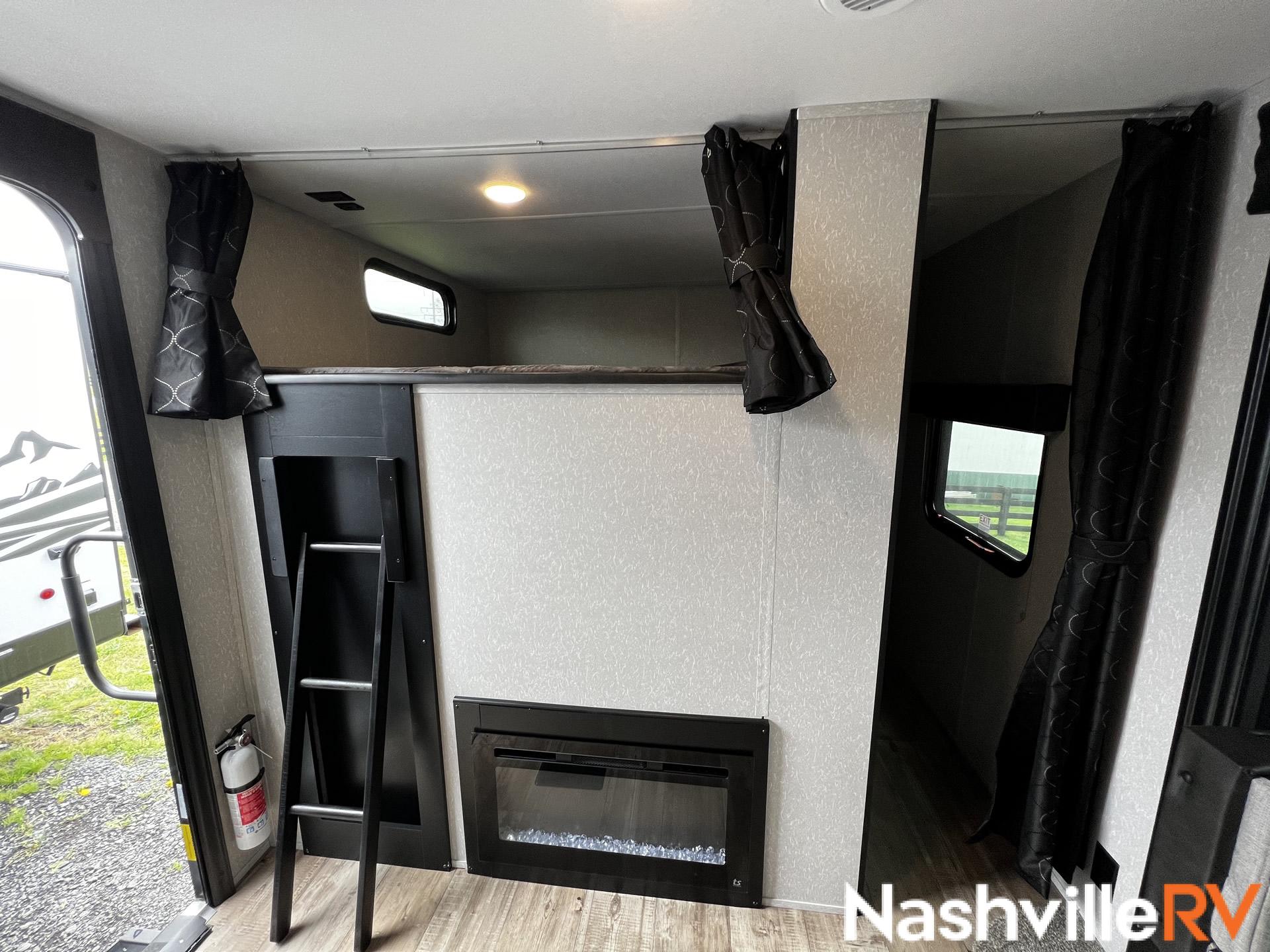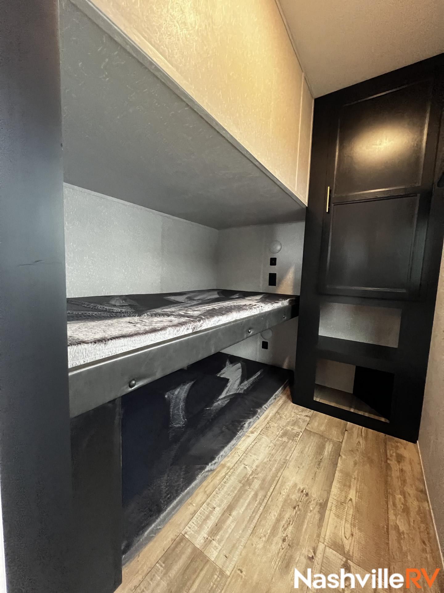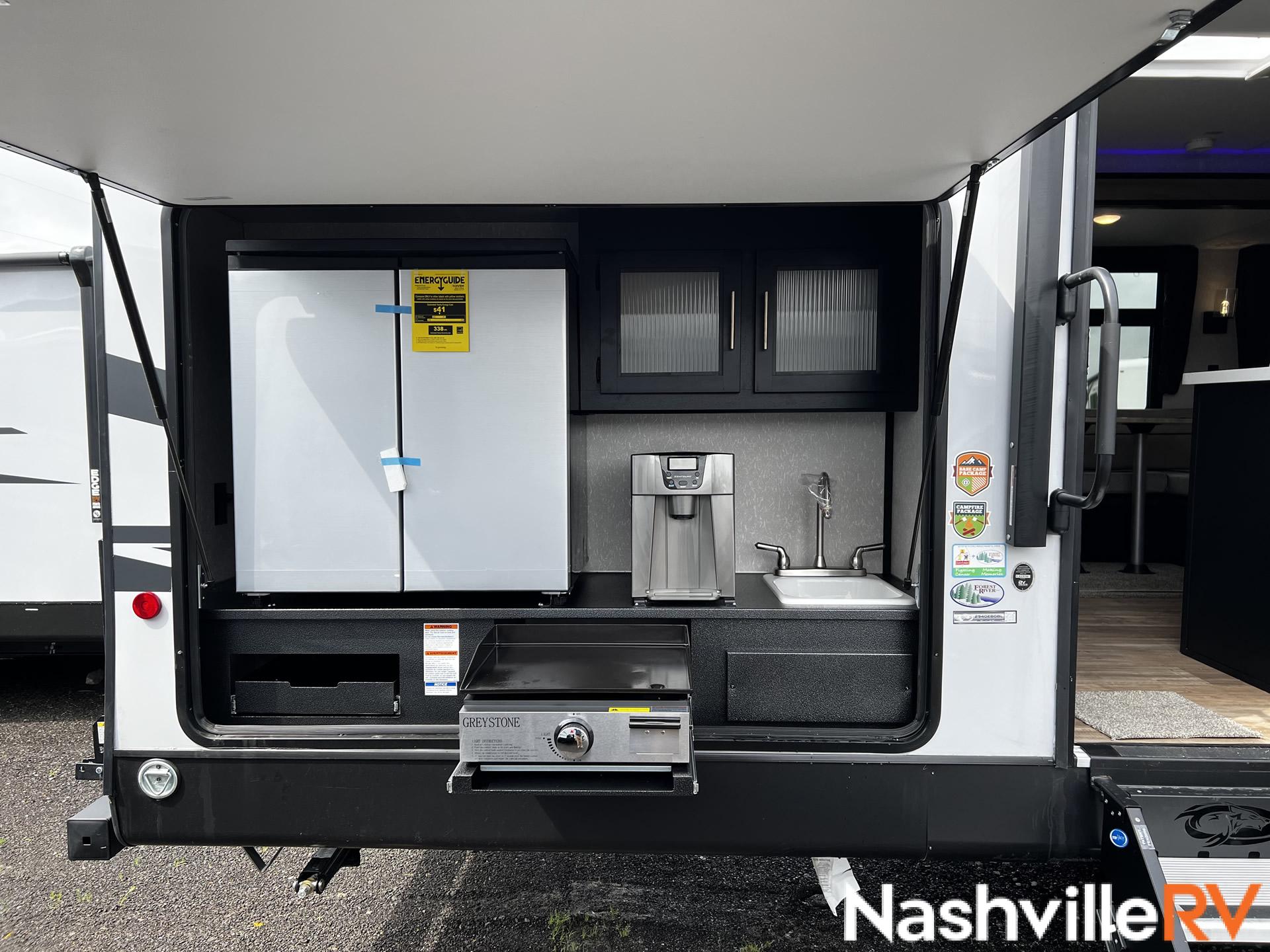 This innovative model lets the customer escape the ordinary with this 3 bedroom model. What separates the 294GEBG from the rest is the rear sleeping areas where a full queen loft bed is featured along with a private bunk area off to the side. This separation created privacy and allows for a Full Bar and Grill featuring an exclusive side-by-side refrigerator and freezer, ice maker, pull-out cooktop, sink and large storage areas.