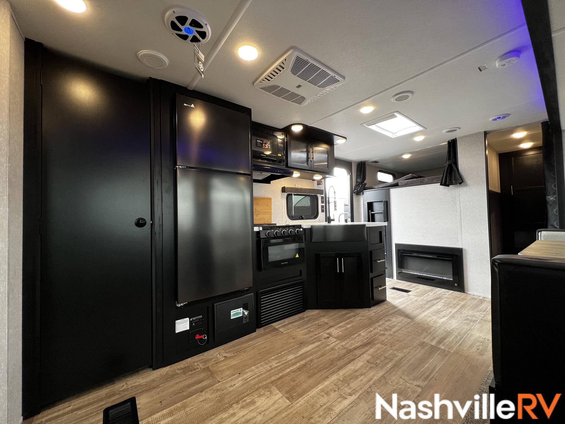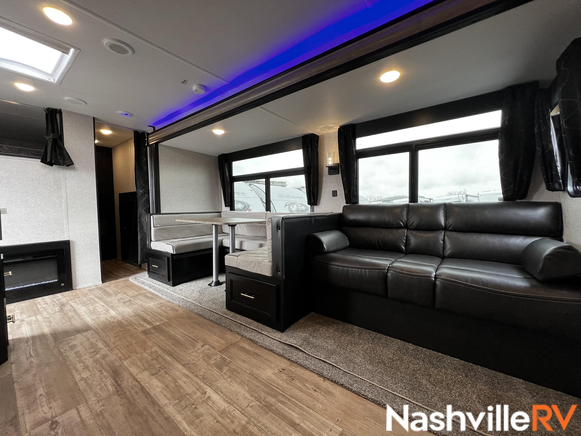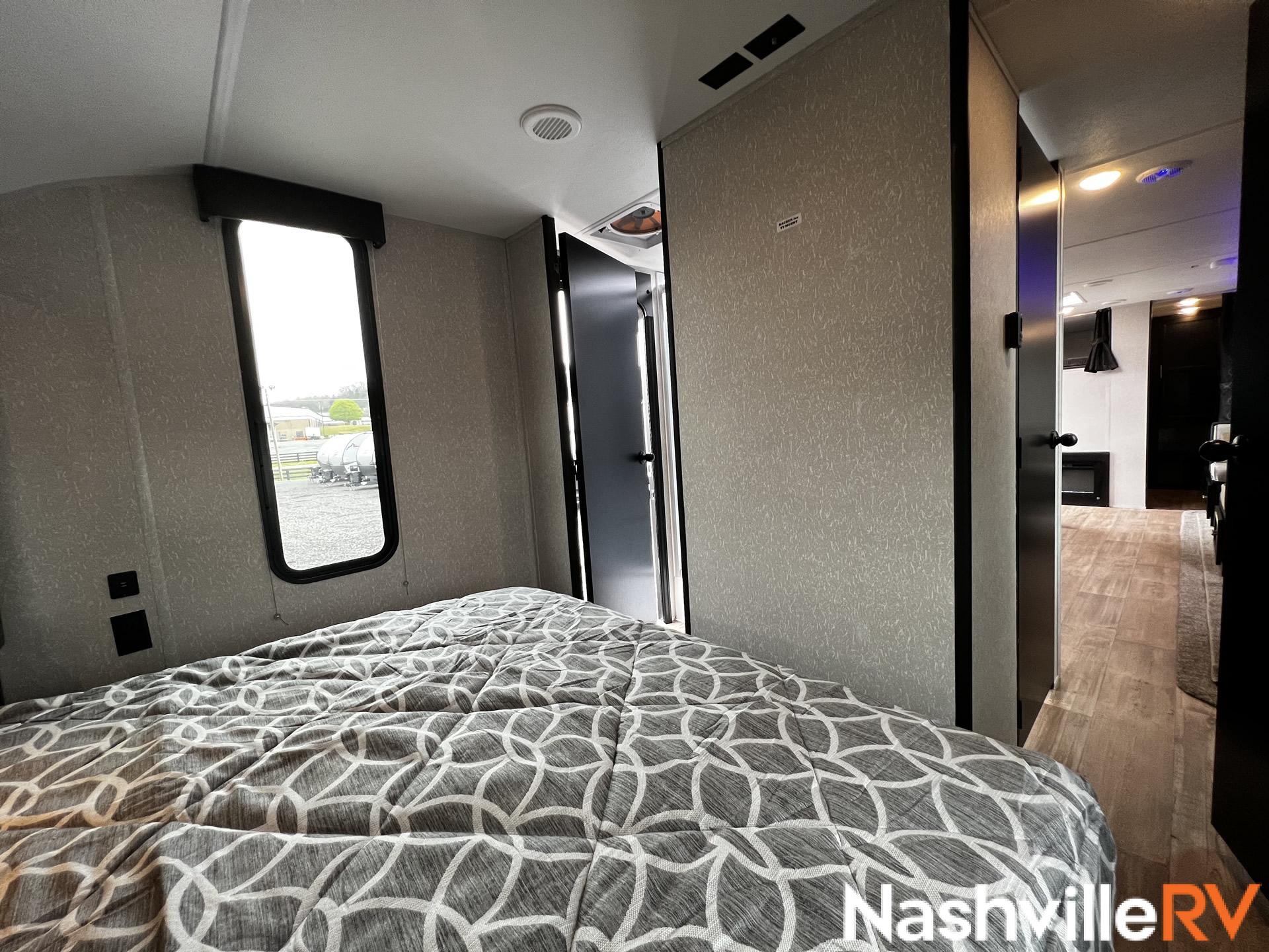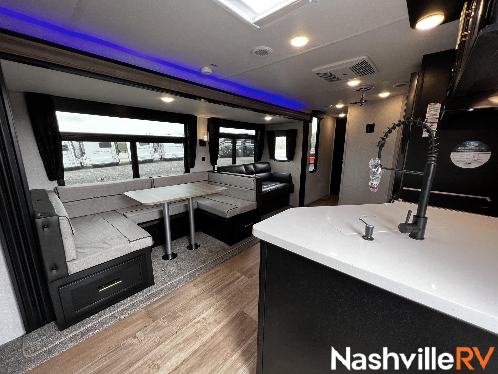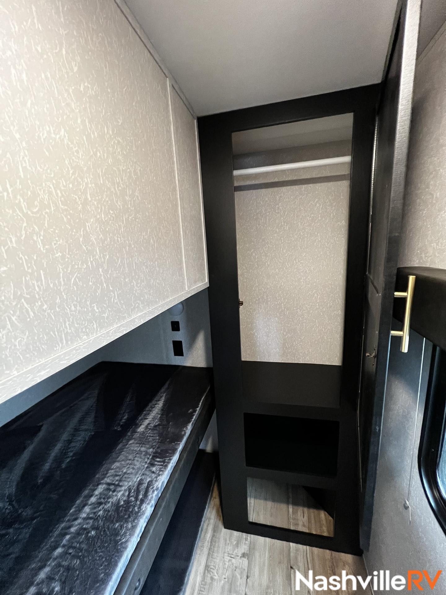 This innovative model lets the customer escape the ordinary with this 3 bedroom model. What separates the 294GEBG from the rest is the rear sleeping areas where a full queen loft bed is featured along with a private bunk area off to the side. This separation created privacy and allows for a Full Bar and Grill featuring an exclusive side-by-side refrigerator and freezer, ice maker, pull-out cooktop, sink and large storage areas.
