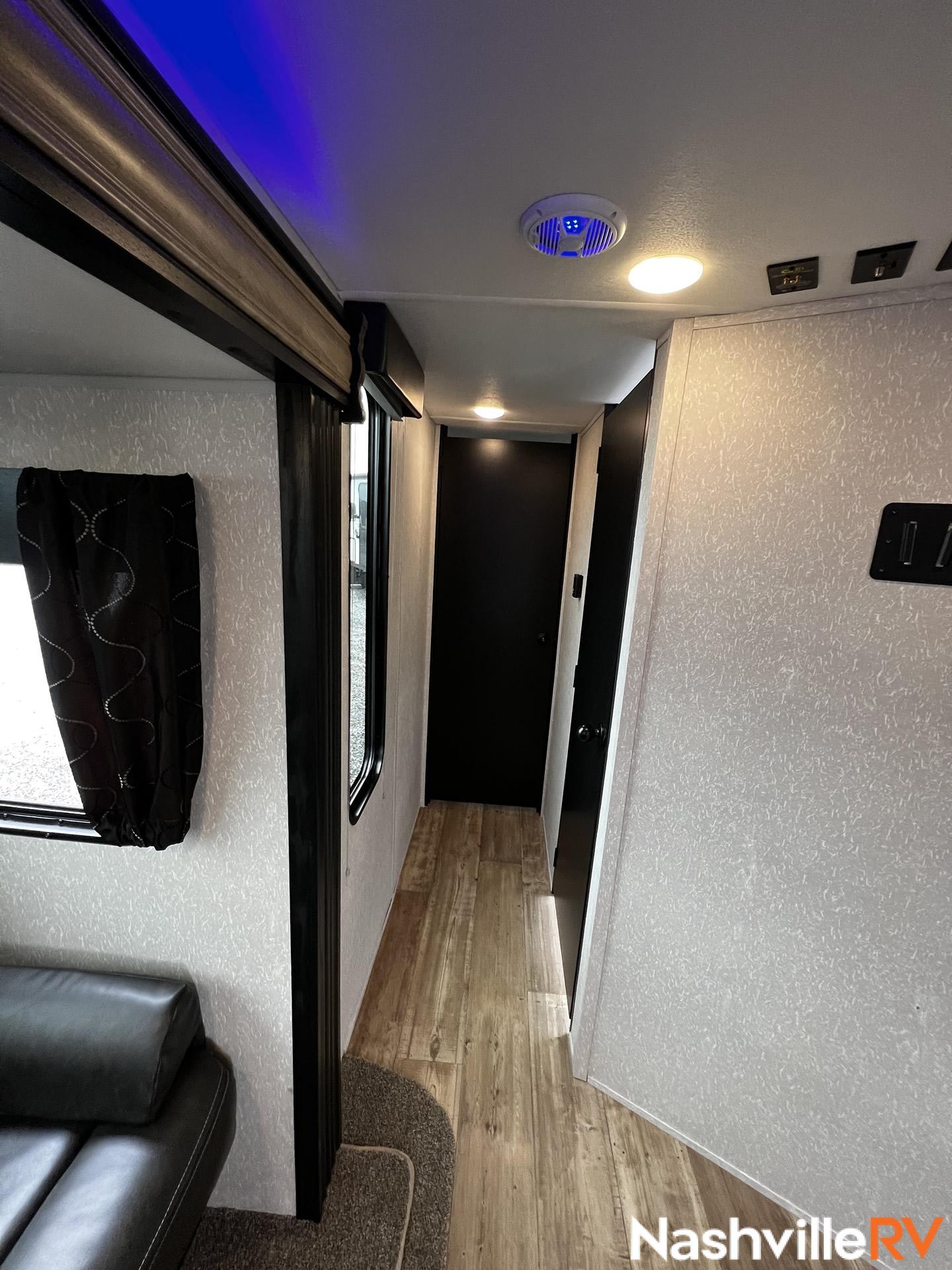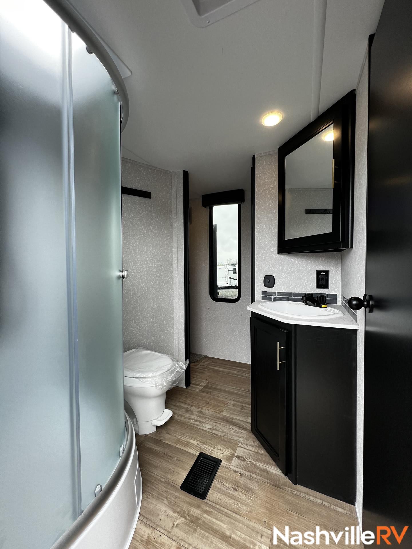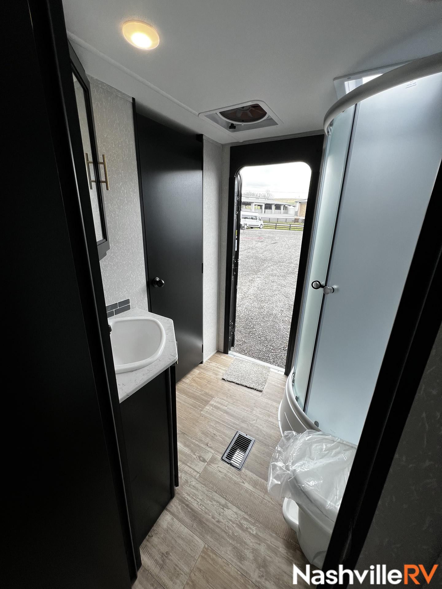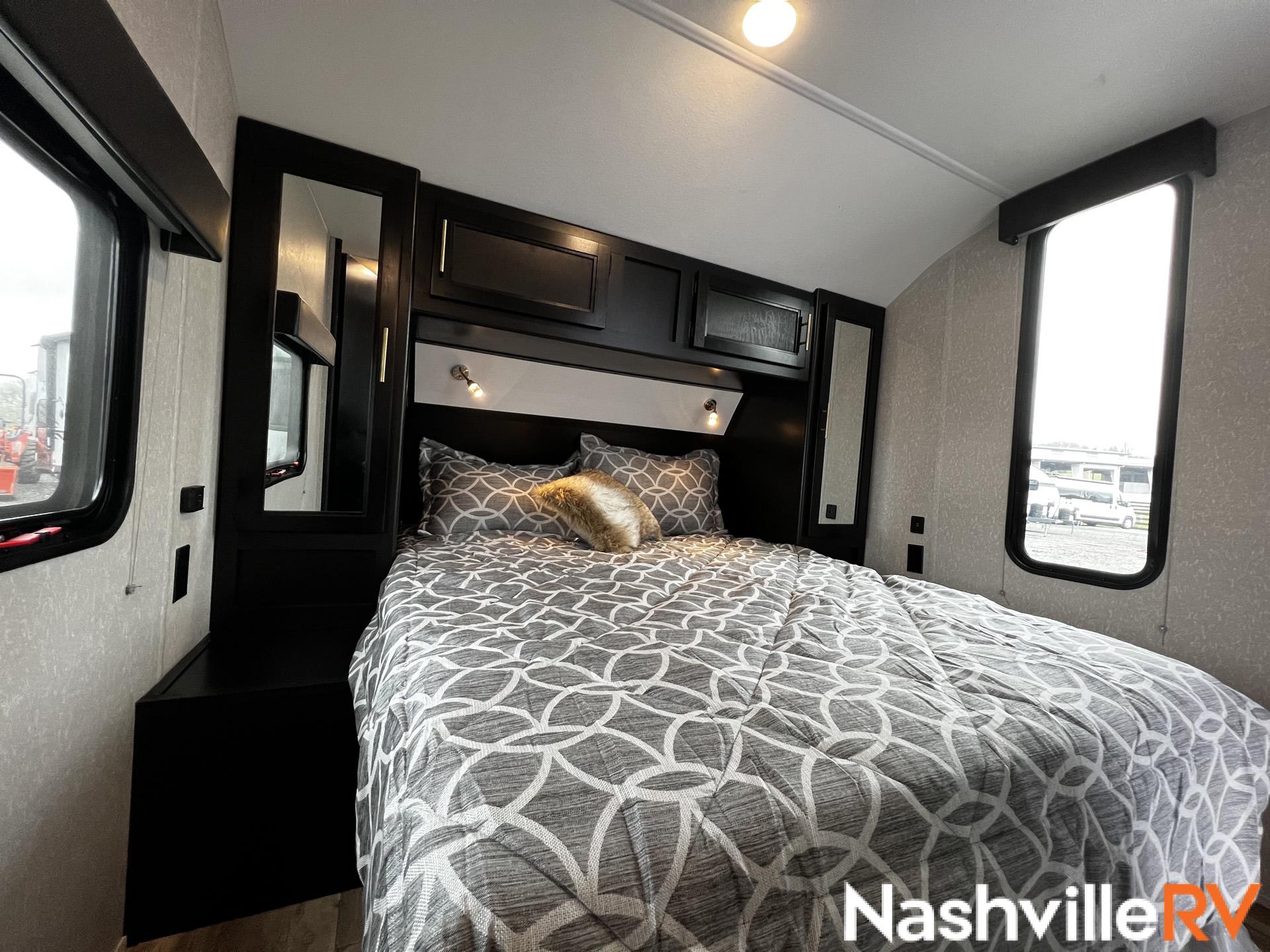 This innovative model lets the customer escape the ordinary with this 3 bedroom model. What separates the 294GEBG from the rest is the rear sleeping areas where a full queen loft bed is featured along with a private bunk area off to the side. This separation created privacy and allows for a Full Bar and Grill featuring an exclusive side-by-side refrigerator and freezer, ice maker, pull-out cooktop, sink and large storage areas.