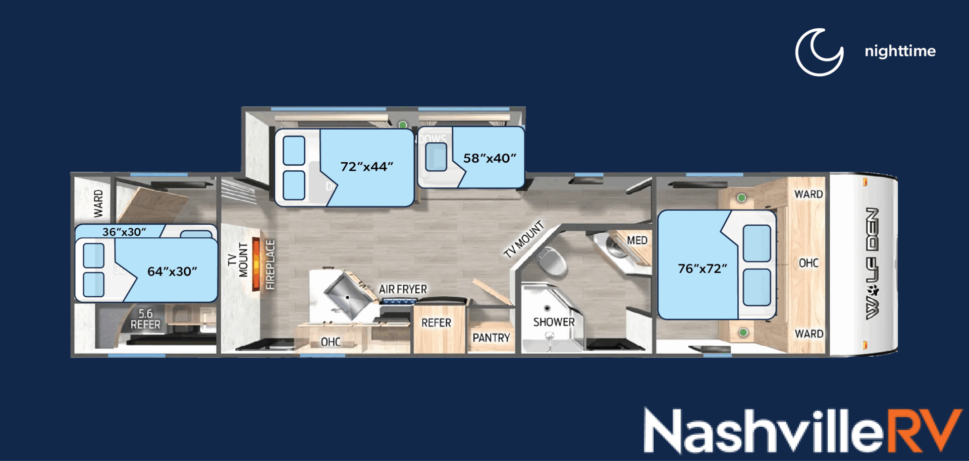 | Fridge | ✓, 10 CU FT | ✓, 10 CU FT | ✓, 10 CU FT | ✓, 10 CU FT |